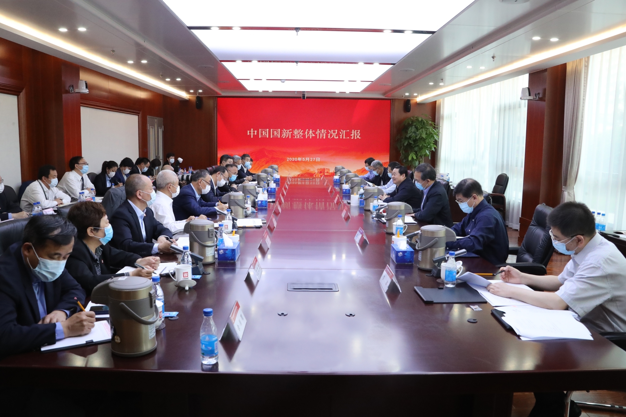 5月27日,国资委党委书记、主任郝鹏到中国国新调研企业经营发展、深化改革和党的建设等情况,强调要认真学习贯彻习近平总书记全国两会期间的重要讲话精神,贯彻落实全国两会部署要求,坚持稳中求进工作总基调,坚持新发展理念,在抓好常态化疫情防控的基础上,聚焦服务国家战略、发展实体经济等重点任务,持续深化改革创新,扎实推进国有资本运营公司试点,积极探索国有资本运营有效模式,奋力完成全年各项目标任务,为做好“六稳”工作、落实“六保”任务作出积极贡献。