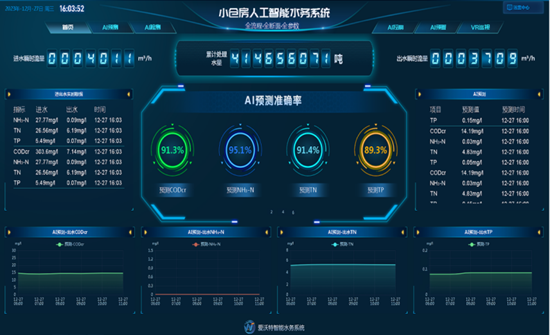 在这里,先进的技术与环保理念相融合。厂区部署的人工智能水务系统,将数据监控平台、曝气智能控制、回流智能调控等核心模块编织成一张覆盖“工艺全流程、监测全断面、参数全维度”的智能化网络。在线预警算法如同24小时值守的“环保哨兵”,精准识别水质超标、数据异常等情况,实现从预警提醒到运维存档的全流程闭环管理,极大地提升了水厂的应急处理能力和管理水平。智能巡检系统则像不知疲倦的“技术专家”,通过自动化分析将工艺调控精度提升30%以上,大幅减少人工干预的需求,为污水处理行业数字化转型树立了技术范本。 再将视线从小仓房净水厂的数智化运行移到绿色能源版图上,一幅清洁低碳的新图景徐徐展开——1.8兆瓦光伏电站如蓝色绸缎铺展在厂区上空,在阳光照耀下,源源不断释放出绿色动能。每年200万度的清洁电力不仅满足厂区绿色用电需求,更以“污水厂+光伏”的创新模式,将污水处理设施向“碳减排枢纽”升级。这种“资源循环+绿色低碳”的路径,使厂区每年的碳减排效果相当于种植冷杉树11万棵,以实打实的生态效益诠释绿色发展的时代内涵,成为污水处理行业向“双碳”目标冲刺的标杆案例。