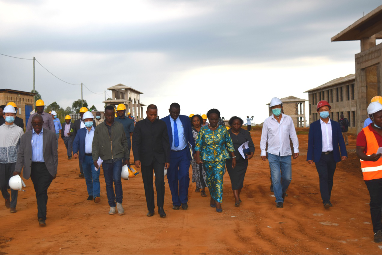 On January 09, 2021, Tanzanian Minister of Education, Science and Technology, Dr. Joyce Ndalichako, Tanzanian Ambassador to China, Mr. Mbelwa Kairuki, Kagera Regional Commissioner, Mr. Marko Elisha Gaguti, Director General of Vocational Education and Training Authority, Mr. Bujulu, visited the China-Aid Project of Kagera Vocational Training and Service Center. Our project management team and EPC contractor’s project technical team presented the project progress to the guests.