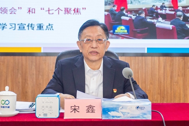 宋鑫强调,要把落实党的二十大精神与学习贯彻习近平总书记关于国资国企工作的重要论述紧密结合起来、有机贯通起来,在全面学习、全面把握、全面落实上下功夫。要进一步提高政治站位、强化使命担当,努力走在前、作表率;要保持战略定力,始终聚焦“两个途径”、发挥“三个作用”,为建设现代化产业体系、构建新发展格局贡献中国节能力量。