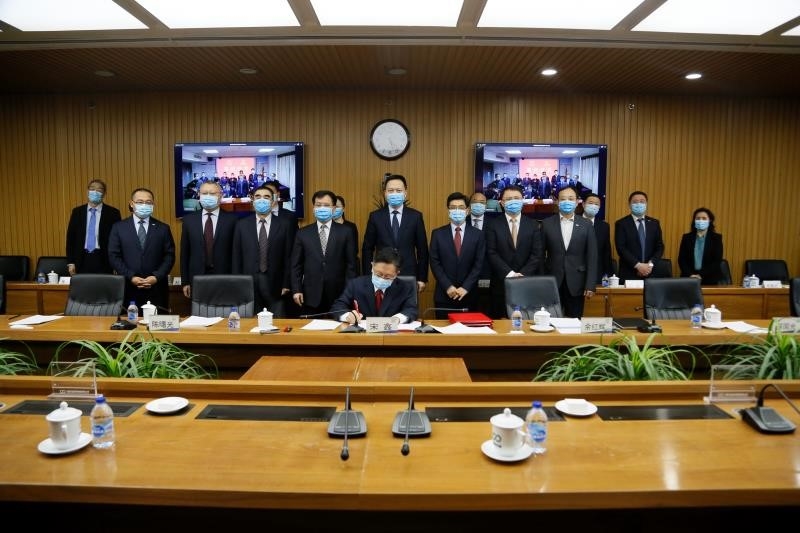3月13日下午,中国节能环保集团有限公司与安徽国祯集团股份有限公司召开视频签约会,签署股权转让协议。集团公司党委书记、董事长宋鑫,党委副书记、总经理余红辉等领导班子全体成员,国祯集团董事会主席李炜,董事会副主席、党委书记常先米、总裁李松珊等管理团队成员出席视频会议,会议由余红辉、常先米主持。
