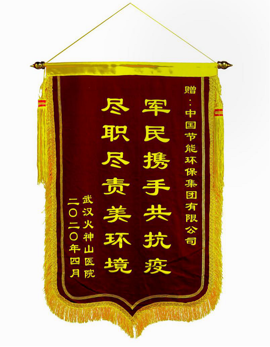 近日,中国节能收到来自武汉火神山医院赠送的一面印有“军民携手共抗疫,尽职尽责美环境”赠语的锦旗。在疫情期间,中国节能承担了及时清运和处理火神山医院医疗废物的紧急任务,为保障医院安全正常运行作出重要贡献。该锦旗凝聚着院方对中国节能付出和努力的感谢,更凝聚着在以习近平同志为核心的党中央坚强领导下军民携手、团结一心、共抗疫情的深厚情谊。