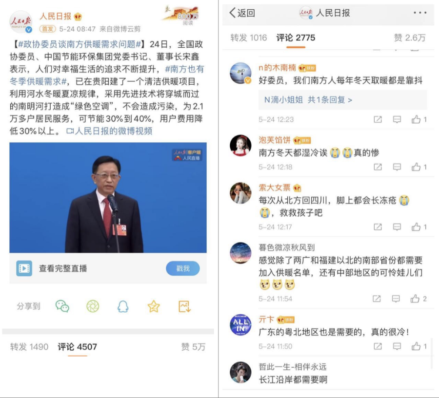 2.【人民日报微博】政协委员谈南方供暖需求问题