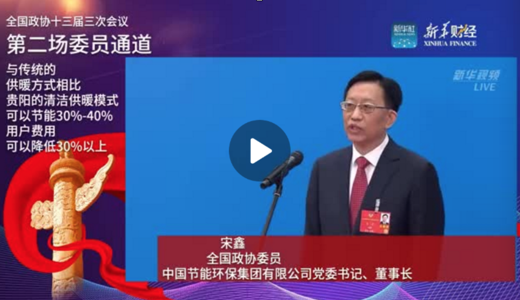 全国政协委员,中国节能环保集团有限公司党委书记、董事长宋鑫在“委员通道”接受采访全程文字实录
