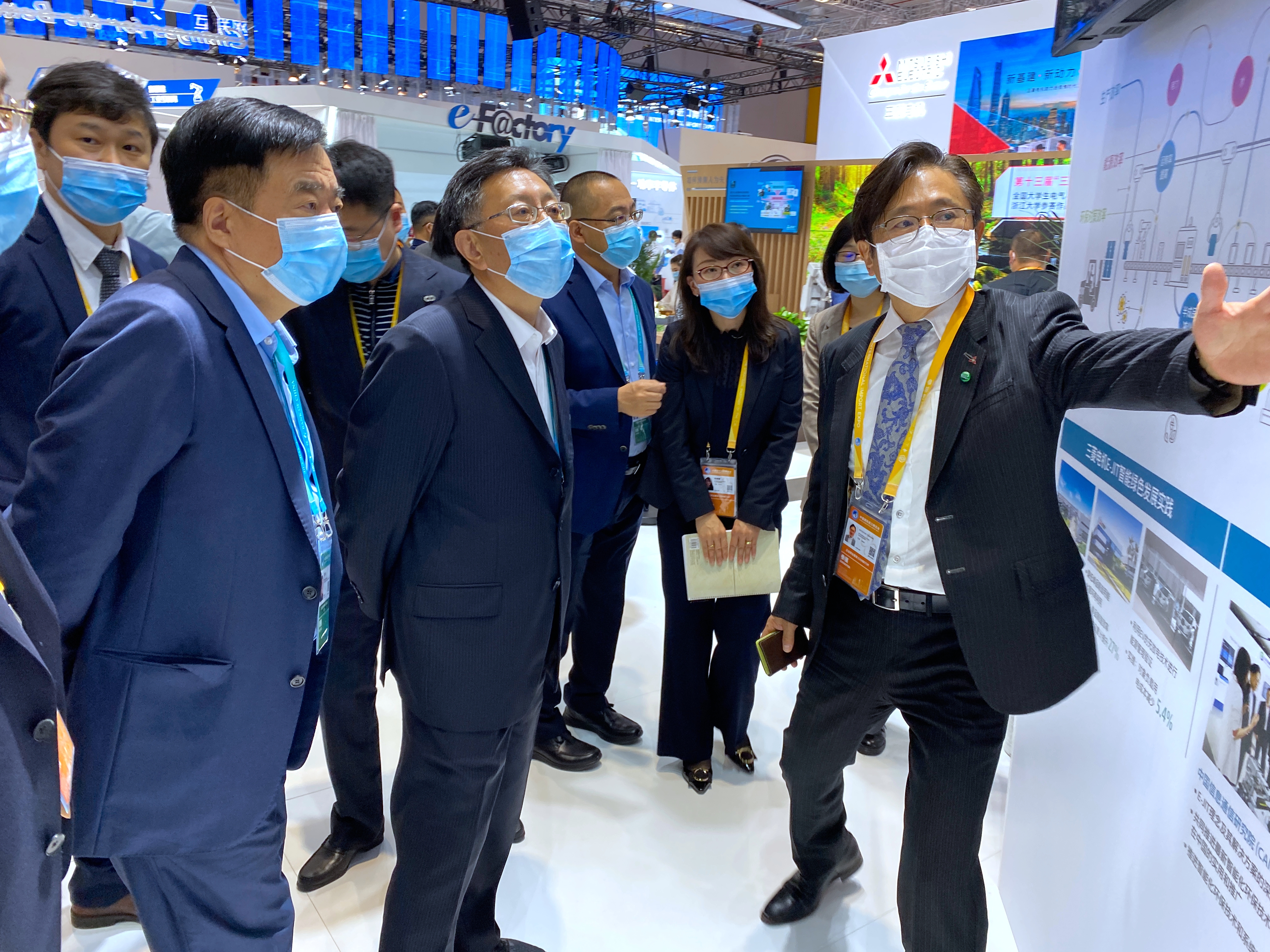 11月4日,第三届中国国际进口博览会在上海开幕。5日上午,集团公司党委书记、董事长宋鑫,党委常委、副总经理刘大军率中国节能交易分团参观进博会技术装备展区,深入了解智能制造与前沿科技,并与三菱电机株式会社执行董事、中国总代表富泽克行就未来合作进行洽谈。参观结束后,宋鑫拜会了上海市副市长汤志平,并赴中节能实业所属昆山项目进行调研。