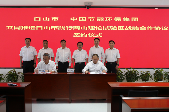 7月9日,中国节能环保集团有限公司与白山市进行座谈并签署战略合作协议。集团公司党委书记、董事长宋鑫和党委副书记、总经理余红辉,白山市委书记谢忠岩共同出席见证签约。集团公司党委常委、副总经理刘大军,白山市委副书记王雪峰分别代表各方签署战略合作协议。