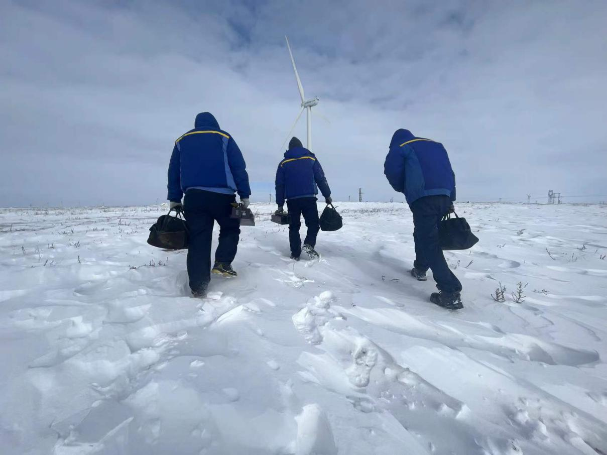 风电张北公司工作人员冒着凛冽的寒风进行巡检
