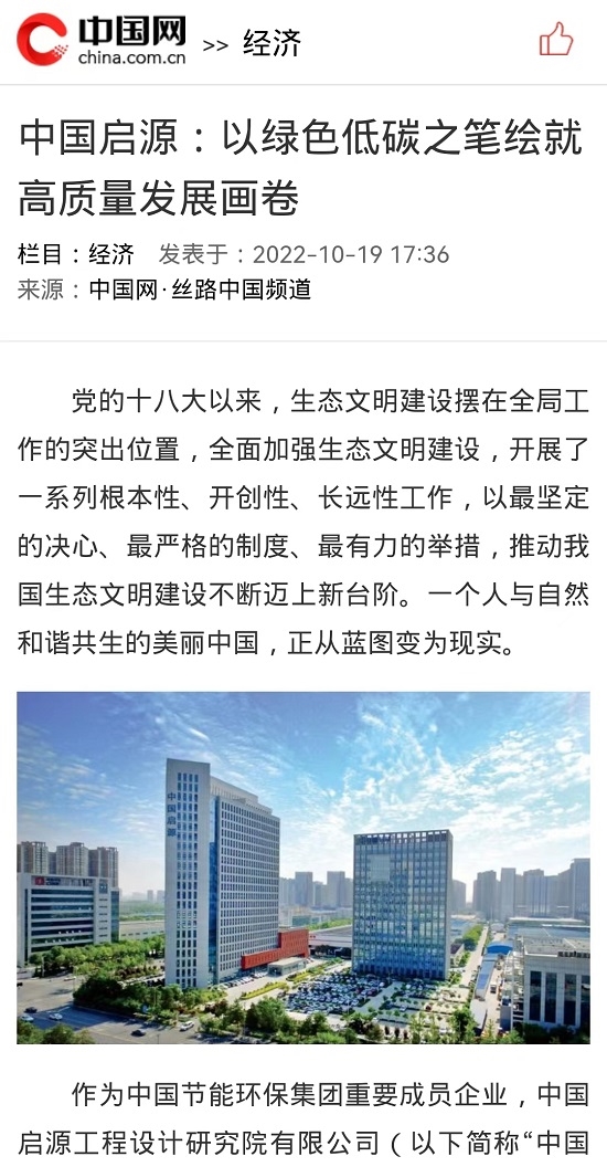 作为中国节能环保集团重要成员企业,中国启源工程设计研究院有限公司(以下简称“中国启源”)始终坚持党的领导,以高质量党建引领企业高质量发展,将生态文明思想充分融入企业发展全过程,重点聚焦七大业务领域,充分发挥公司在工程勘察、规划、设计、科研、咨询、建设监理及管理和总承包业务等方面的优势,勇担生态文明建设重任,以绿色低碳之笔绘就高质量发展画卷。